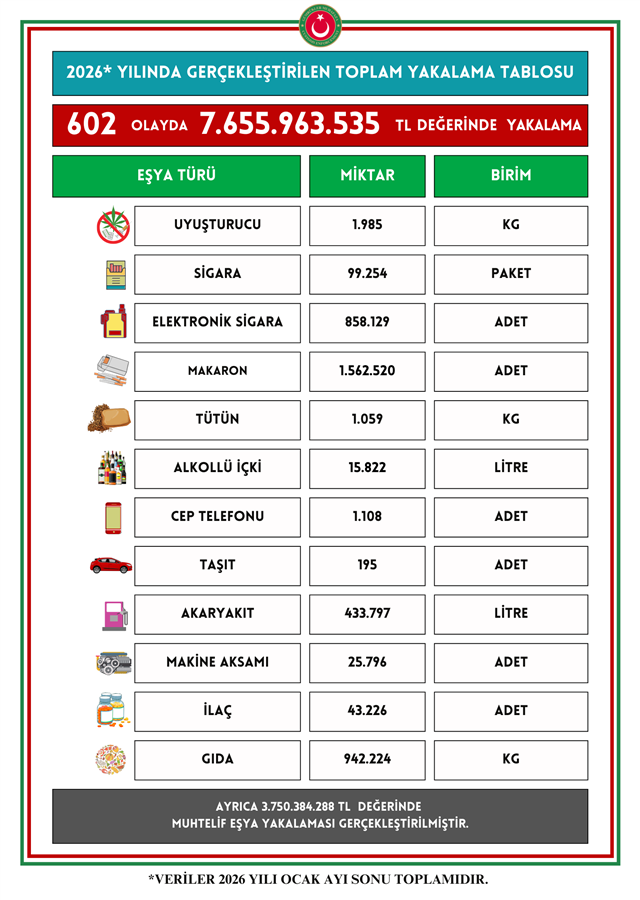 2026 YILI KAÇAK YAKALAMA VERİLERİ