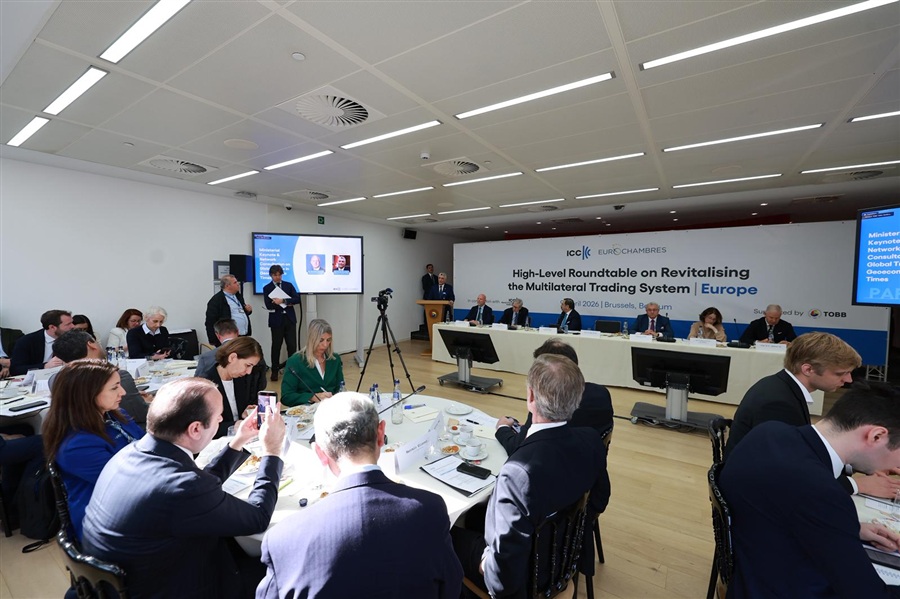 Bakan Bolat, Türkiye Odalar ve Borsalar Birliği (TOBB) Brüksel Temsilciliği'nde, Milletlerarası Ticaret Odası (ICC) ve Avrupa Ticaret ve Sanayi Odaları Birliği (Eurochambres) işbirliğiyle düzenlenen "Çok Taraflı Ticaret Sisteminin Canlandırılması" konulu üst düzey yuvarlak masa toplantısının açılış konuşmasını gerçekleştirdi.